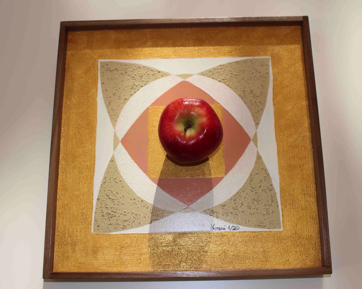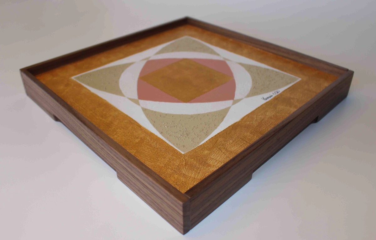 Artistic object made and decorated by hand. Walnut and non toxic water-based paint.