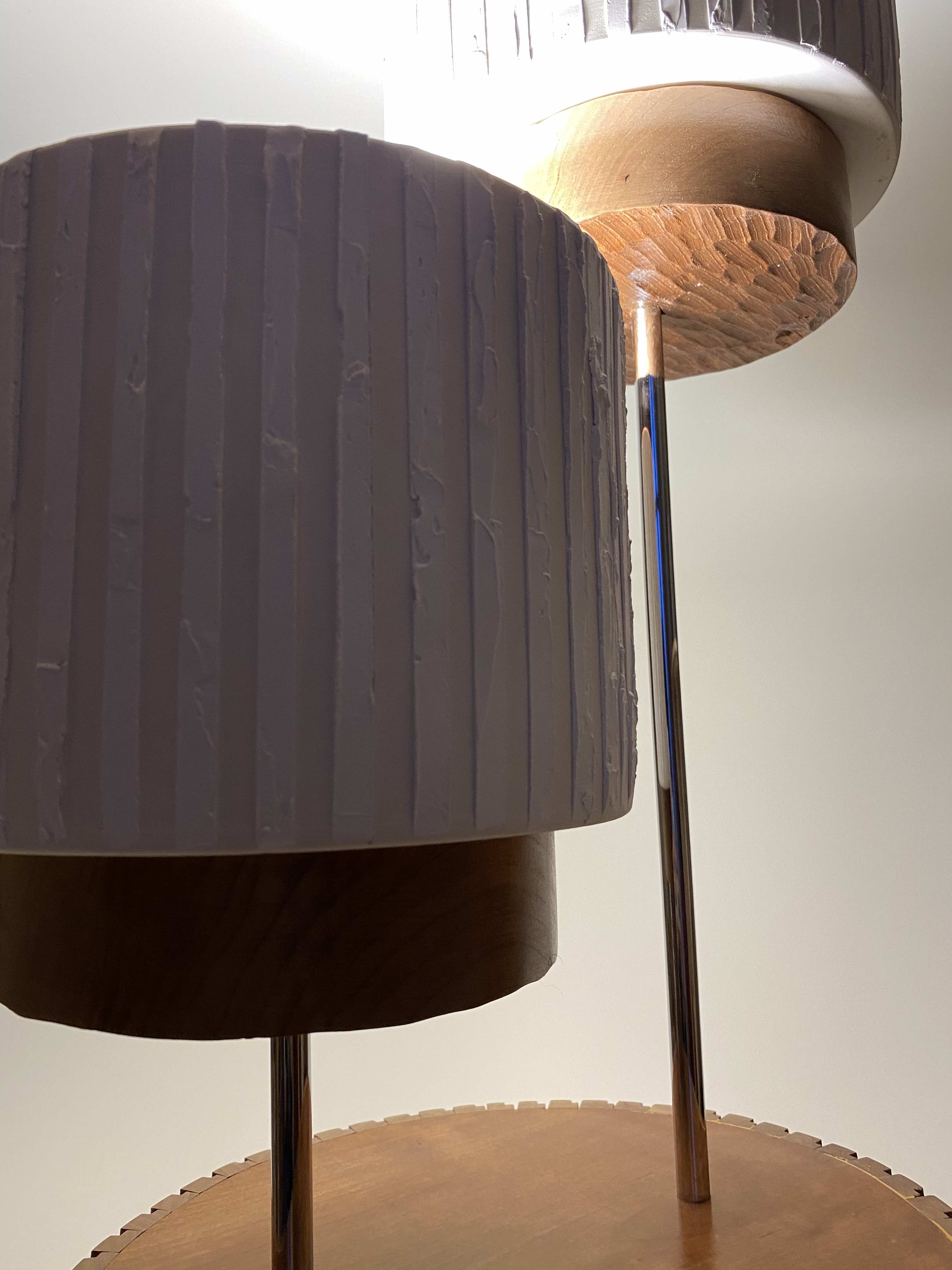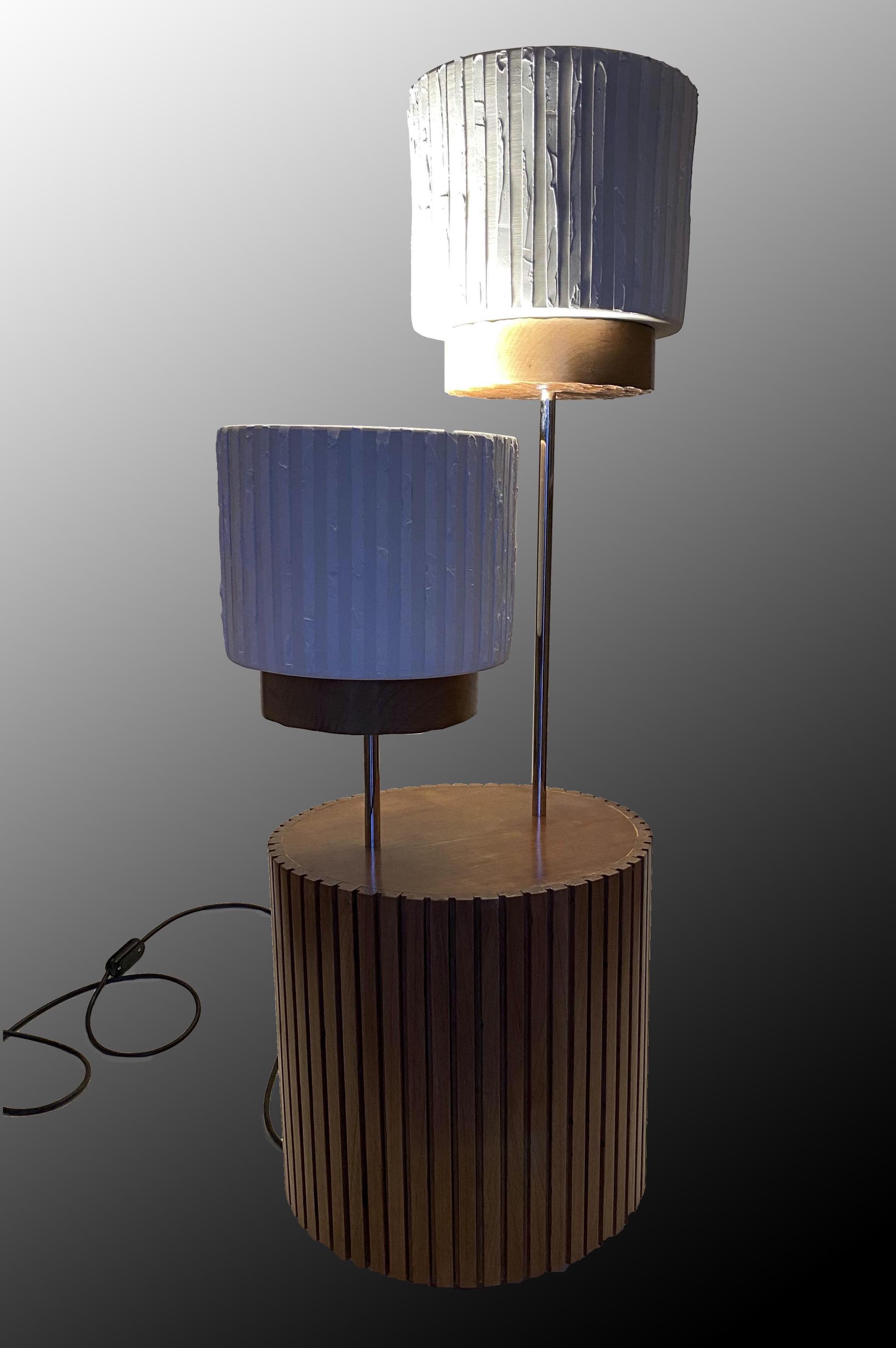 Lamp in cherrywood and turned and hand decorated ceramic.
