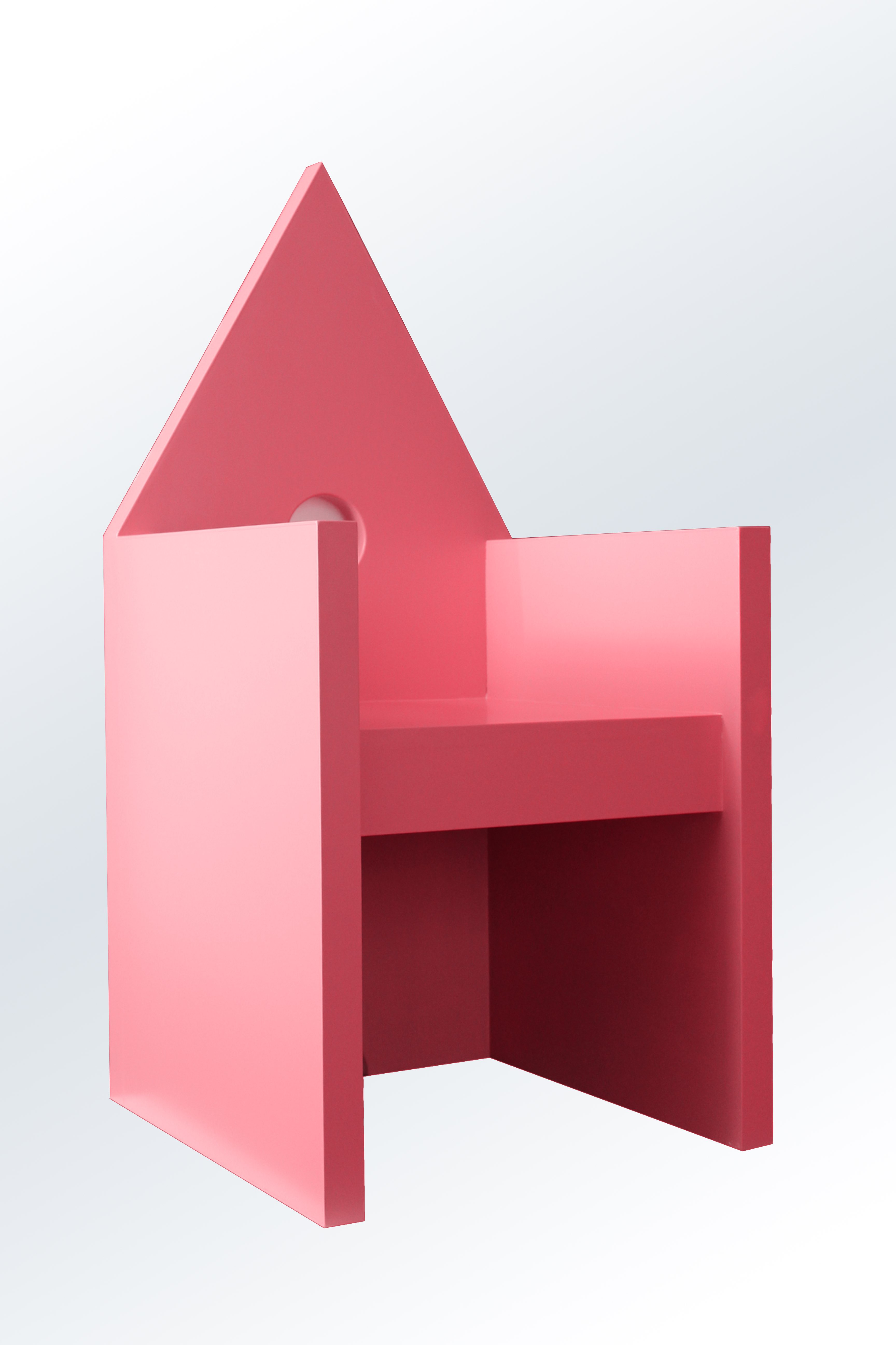 " Un sedile squadrato con fiancate rettangolari verticale , fiancheggianti seduta a pannello orizzontale e formanti braccioli , pannello tergale verticale con cuspide triangolare superiore "