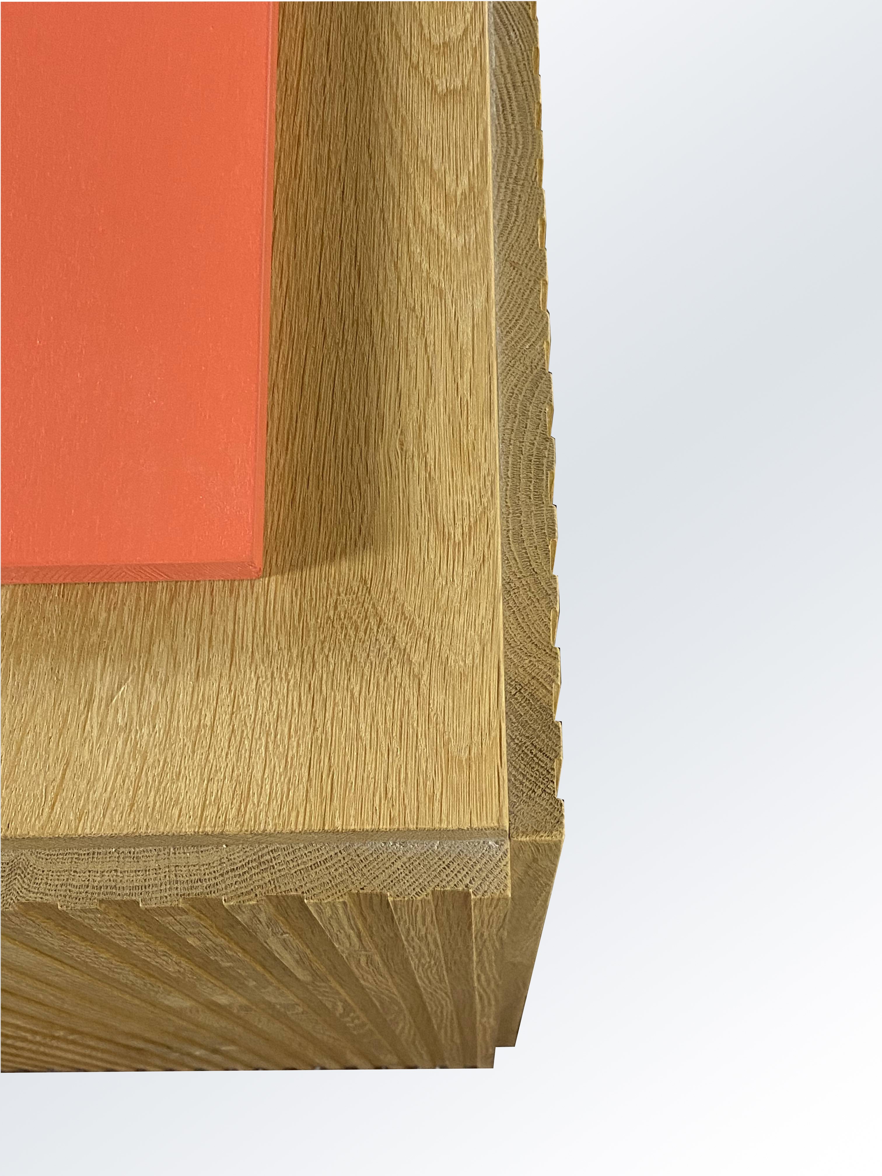 In oak with lacquered top in 16 colors. Sideboard with one door and one movable internal shelf.