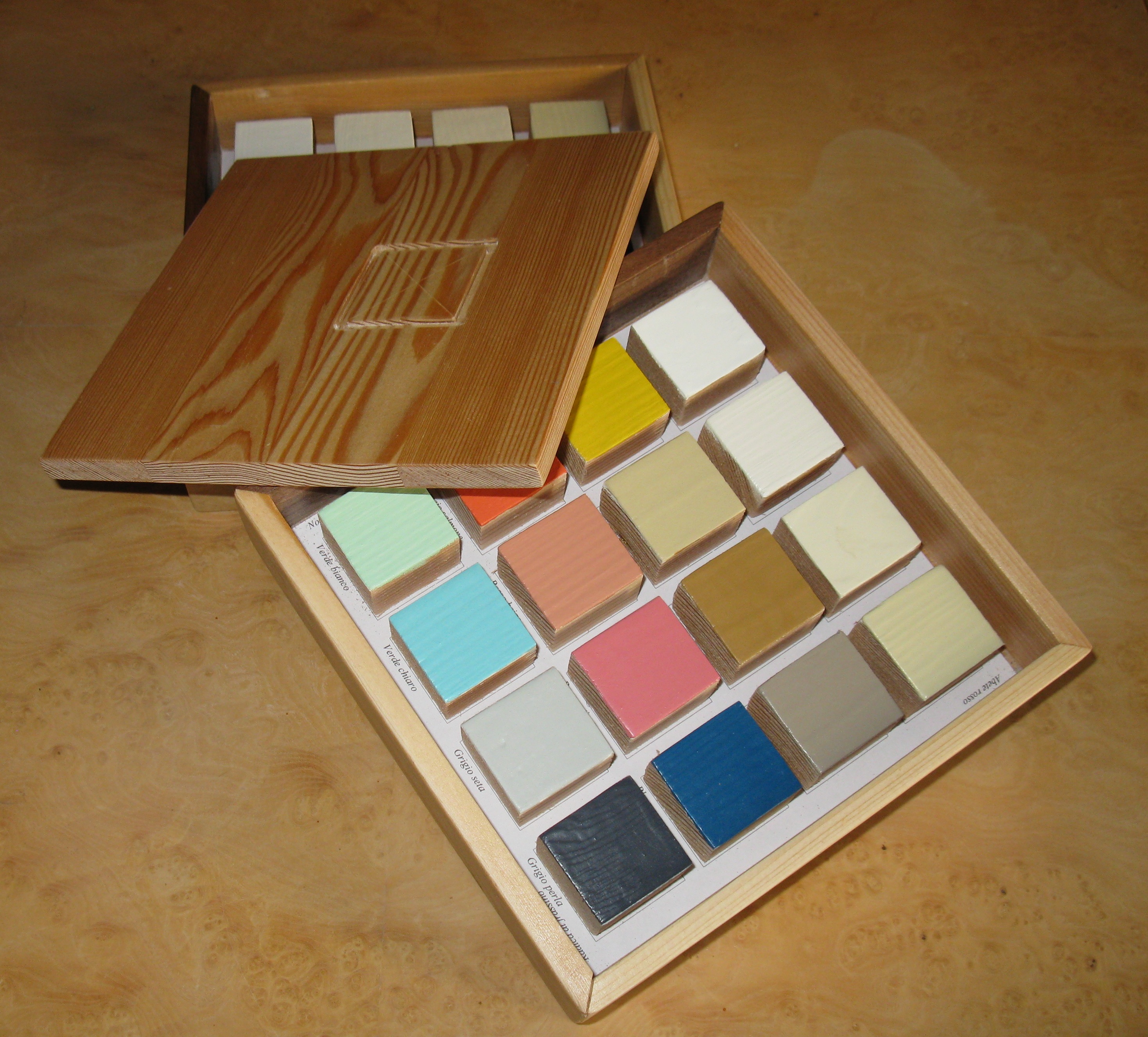 In oak with lacquered top in 16 colors. Sideboard with one door and one movable internal shelf.