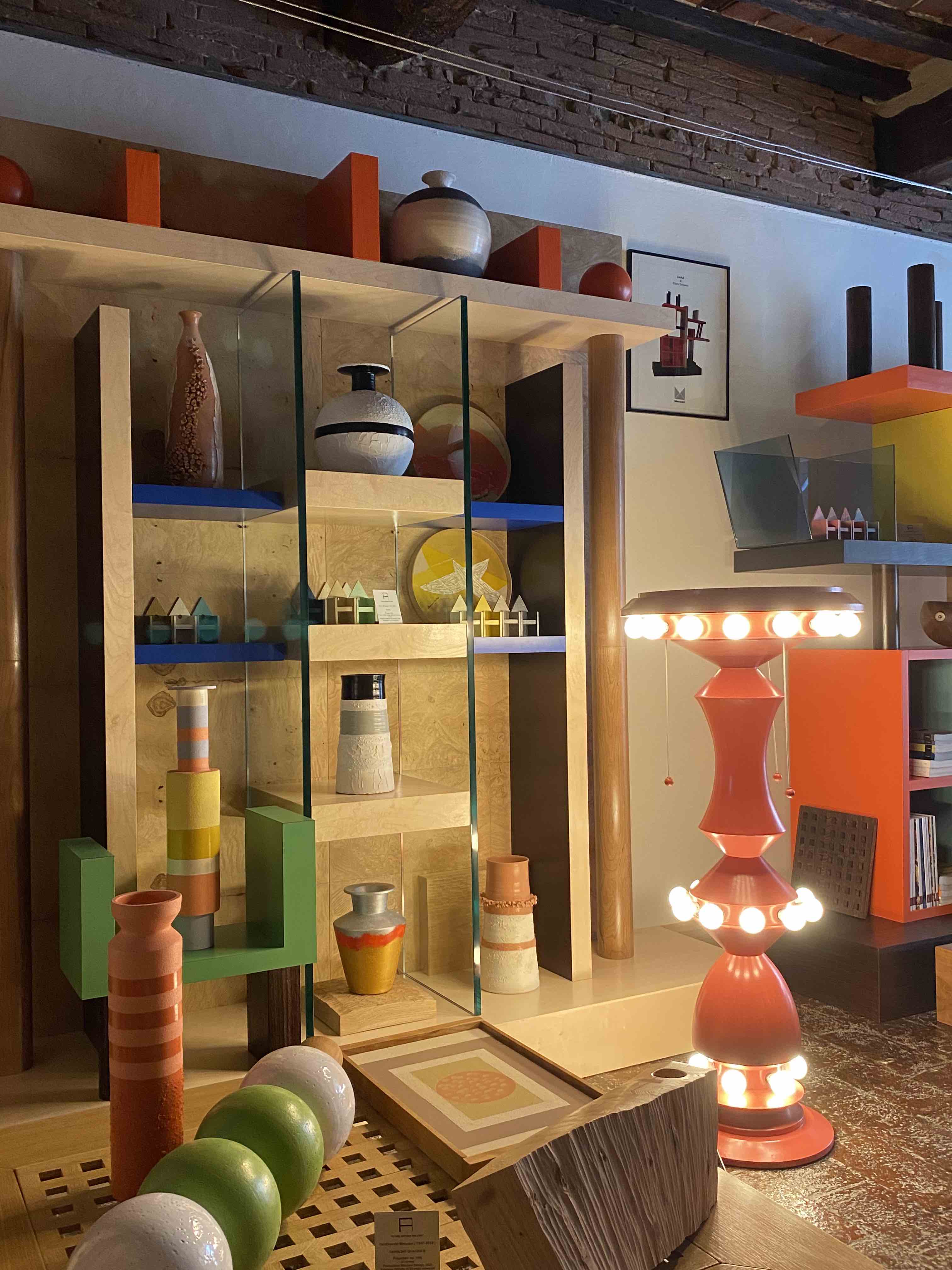 The "Giostra" Lamp ( inspired by Fellini's films ) was designed by Ferdinando Meccani in 1987 for the Salone del Mobile in Milan and for the Exhibition Abitare il Tempo in Verona .
